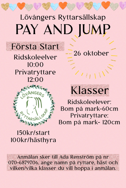 + 100kr/ häst hyra för ridskoleelever ( anmälan för ridelever görs genom listan som kommer sitta på anslagstavlan i stallet✏️) om du har frågor om vilken höjd du bör välja kontakta din instruktör.
